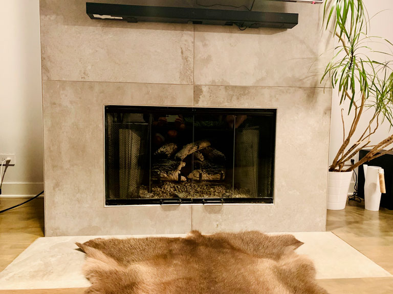 Dreamy Marfil Caesarstone Quartz Fireplace Surround in Chicago, IL